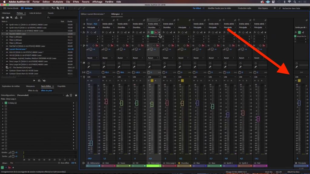 Si les sons ont été correctement normalisés avant d’être importés dans le mode multipiste, nous n’avons, à priori, plus besoin de toucher au gain.